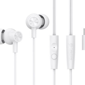 CELEBRAT earphones με μικρόφωνο G37, USB-C σύνδεση, 14.2mm, 1.2m, λευκά