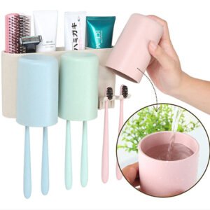 ECOCO βάση οδοντόβουρτσας με 3 ποτήρια E1615, μπεζ