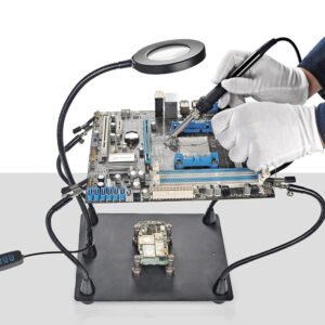 KAISI βάση πλακέτας PCB TE-808 με μεγεθυντικό φακό & βραχίονες, μαύρη
