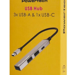 POWERTECH USB hub PTR-0150 με θύρα δικτύου, 4 θυρών, USB & USB-C, γκρι