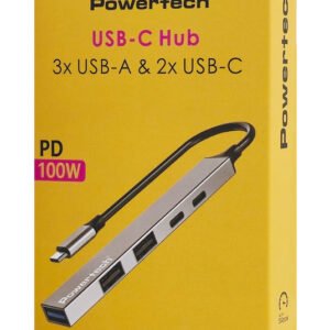 POWERTECH USB hub PT-1414, 5x θυρών, USB 3.2, 5Gbps, 100W, USB-C σύνδεση, γκρι