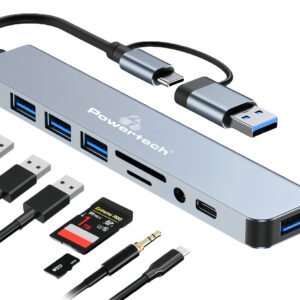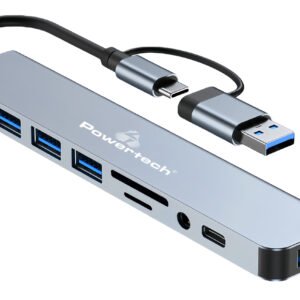 POWERTECH USB hub PTR-0151 με card reader, 8 θυρών, USB & USB-C, γκρι