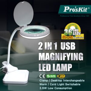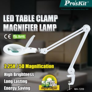 PROSKIT μεγεθυντικός φακός MA-1209LI με σφιγκτήρα, LED, 5D 2.25x, λευκός