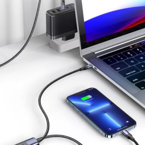 USAMS καλώδιο USB-C σε USB-C & Lightning US-SJ550, PD 100W, 1.2m, μαύρο