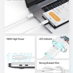 USAMS καλώδιο USB-C σε USB-C US-SJ660, 100W, 480Mbps, 1.2m, λευκό