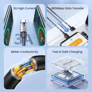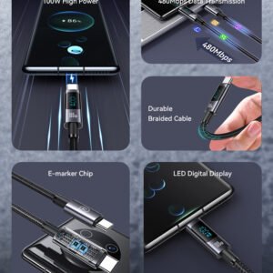 USAMS καλώδιο USB-C σε USB-C US-SJ580, 240W PD 3.1, 480Mbps, 1.2m, μαύρο