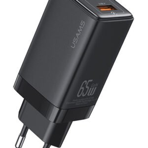 USAMS φορτιστής τοίχου US-CC180, USB & 2x USB-C, 65W PD, GaN, μαύρος