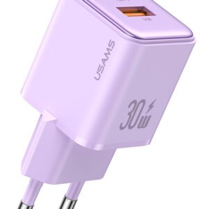 USAMS φορτιστής τοίχου US-CC189, USB & USB-C, 30W PD, μωβ