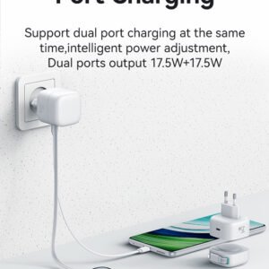 USAMS φορτιστής τοίχου US-CC189, USB & USB-C, 30W PD, λευκός