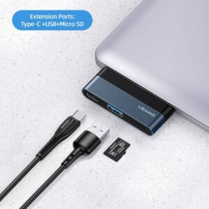 USAMS USB hub US-SJ491 με card reader, 2x θυρών, 5Gbps, 60W, USB-C, γκρι