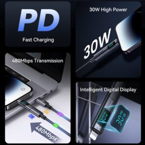 USAMS αντάπτορας Lightning σε USB-C US-SJ681 με οθόνη, 30W, γκρι