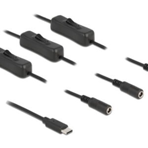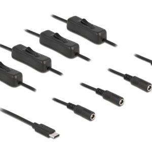 DELOCK καλώδιο USB Type-C σε 4x DC 5.5 x 2.1mm 86802, 1m, μαύρο