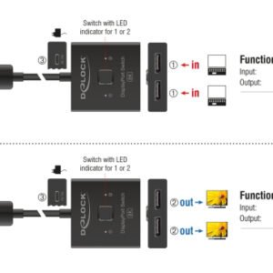 DELOCK DisplayPort switch 18906, 2 σε 1, bidirectional, 8K/30Hz, μαύρο