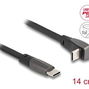DELOCK καλώδιο USB-C 80750, 60W, flat, γωνιακό, 480 Mbps, 14cm, μαύρο