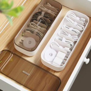 ECOCO κουτί οργάνωσης καλωδίων E2206 με ταινία τύπου velcro, λευκό