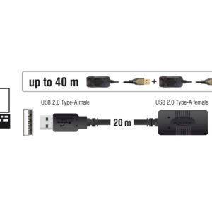 DELOCK καλώδιο USB 2.0 αρσενικό σε θηλυκό 82690, active, 20m, μαύρο