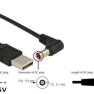 DELOCK καλώδιο USB σε DC 5.5 x 2.1mm 83578, γωνιακό, 1.5m, μαύρο