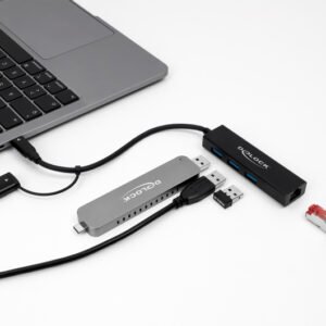 DELOCK docking station 64149, 4 θυρών, USB & USB-C σύνδεση, μαύρο