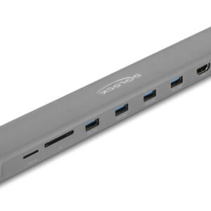 DELOCK docking station 87895, 9 θυρών, βάση laptop, 85W PD, 4K, γκρι