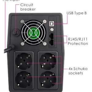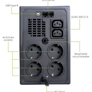 POWERTECH UPS Line Interactive PT-1297 με οθόνη, 1500VA, 900W, 4x Schuko, 2x RJ45/RJ11, USB Type B