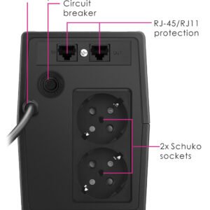 POWERTECH UPS Line Interactive PT-850LCD με οθόνη, 850VA, 510W, 2x Schuko, 2x RJ45/RJ11