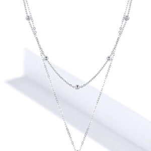 BAMOER κολιέ SCN365 δυο σειρών, ασήμι 925, ασημί