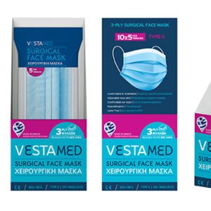 VESTAMED χειρουργική μάσκα 3 στρωμάτων Χ26, BFE >98% 10x 5τμχ λευκή
