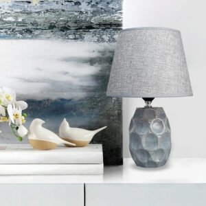 POWERTECH επιτραπέζιο φωτιστικό HLL-0142, E27, κεραμική βάση, γκρι