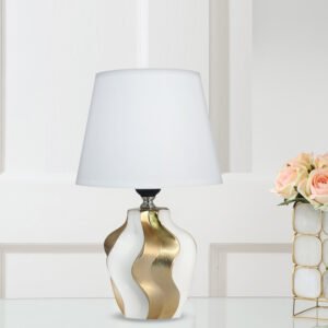 POWERTECH επιτραπέζιο φωτιστικό HLL-0135, E27 κεραμική βάση, λευκό/χρυσό