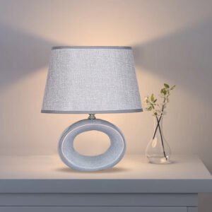 POWERTECH επιτραπέζιο φωτιστικό HLL-0138, E27, κεραμική βάση, γκρι