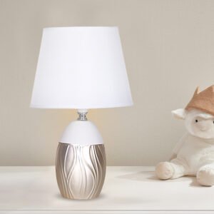 POWERTECH επιτραπέζιο φωτιστικό HLL-0137, E27 κεραμική βάση, λευκό/χρυσό