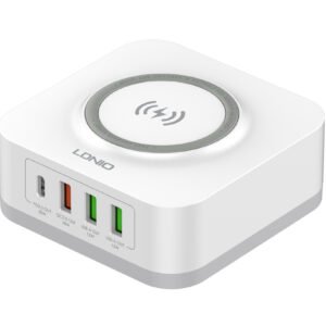 LDNIO σταθμός φόρτισης AW004, USB-C/3x USB/wireless, 32W, PD/QC, λευκός