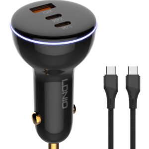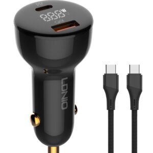 LDNIO φορτιστής αυτοκινήτου C101 με καλώδιο, USB/USB-C, 100W PD, μαύρος