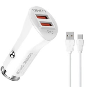 LDNIO φορτιστής αυτοκινήτου C511Q με καλώδιο, 2x USB, 36W, λευκός