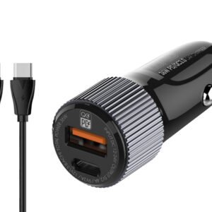 LDNIO φορτιστής αυτοκινήτου C1 με καλώδιο, USB & USB-C, 38W PD, μαύρος