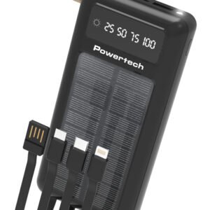 POWERTECH ηλιακό power bank PT-1084 με καλώδια & οθόνη, 20000mAh, μαύρο