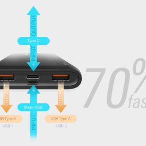 SILICON POWER power bank QP15, 10000mAh, 2x USB & USB Type-C, 3A, μαύρο