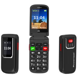 POWERTECH κινητό τηλέφωνο Milly Flip, 2.4", dual SIM, πλήκτρο SOS, μαύρο