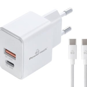 POWERTECH φορτιστής τοίχου PT-1044, USB & USB-C, PD QC3.0, 30W, λευκός