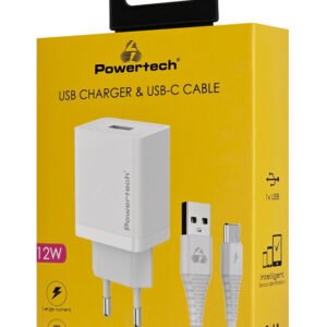 POWERTECH φορτιστής τοίχου PT-1322 με καλώδιο USB-C, USB, 12W, λευκός