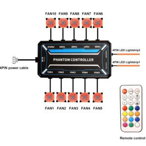 POWERTECH RGB fan controller PCF01-5C με ασύρματο χειριστήριο, 10 connectors