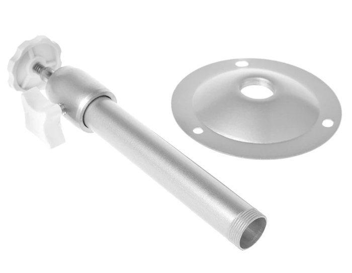 Μεταλλική βάση με περιστρεφόμενη κεφαλή, ιδανική για προτζέκτορες και κάμερες ασφαλείας. Η τοποθέτηση της γίνεται βιδωτά σε οποιαδήποτε επίπεδη επιφάνεια τοίχου ή οροφής.