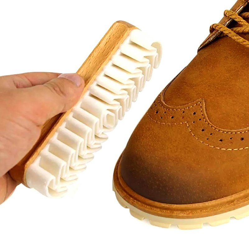 Βούρτσα crepe, ιδανική για τον καθαρισμό και συντήρηση δερμάτινων παπουτσιών τύπου suede και nubuck. Διαθέτει ανθεκτική βούρτσα από καουτσούκ και ξύλινη λαβή που εξασφαλίζει σταθερό και άνετο κράτημα κατά τον καθαρισμό.