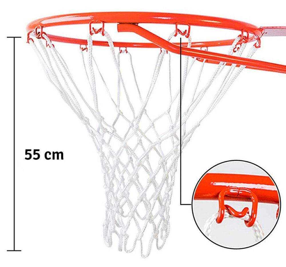 Εξαιρετικά πρακτικό δίχτυ για στεφάνι μπασκέτας. Διαθέτει 12 θηλιές που επιτρέπουν το κρέμασμα της στα γατζάκια της στεφάνης.