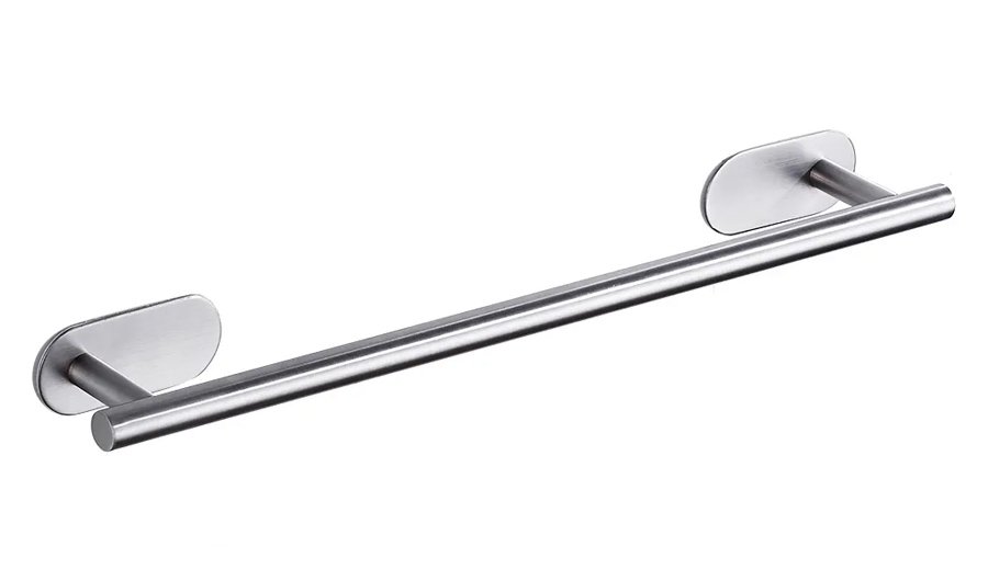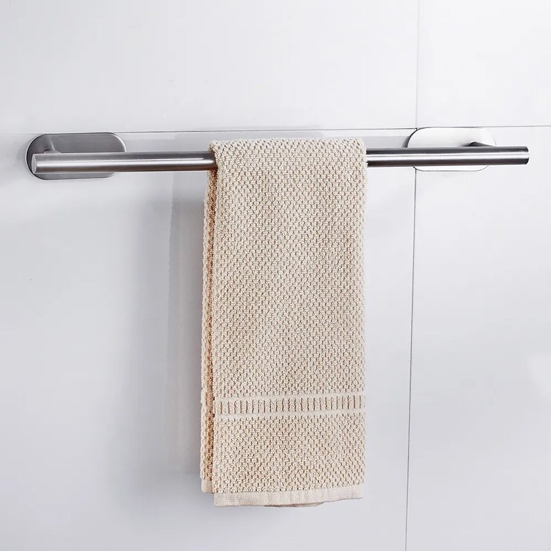 Μεταλλική κρεμάστρα για πετσέτες, ιδανική για το μπάνιο ή την κουζίνα. Τοποθετείται εύκολα στον τοίχο με αυτοκόλλητα.