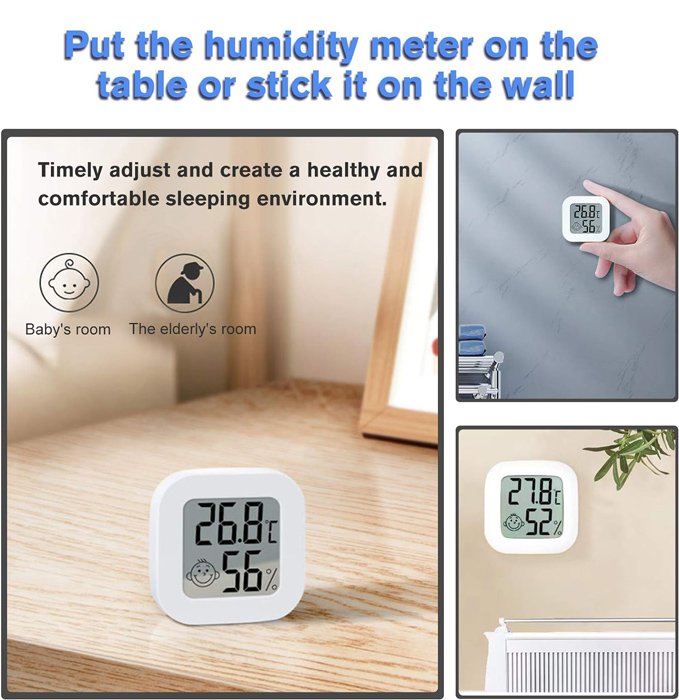 Μίνι ψηφιακό θερμόμετρο & υγρασιόμετρο με ευανάγνωστη οθόνη για την ακριβή ένδειξη της θερμοκρασίας και ποσοστού της υγρασίας στον χώρο σας. Μπορεί να τοποθετηθεί είτε επιτραπέζια είτε επιτοίχια με αυτοκόλλητο. Η τροφοδοσία του γίνεται με 1x CR2032 μπαταρία (δεν συμπεριλαμβάνεται)