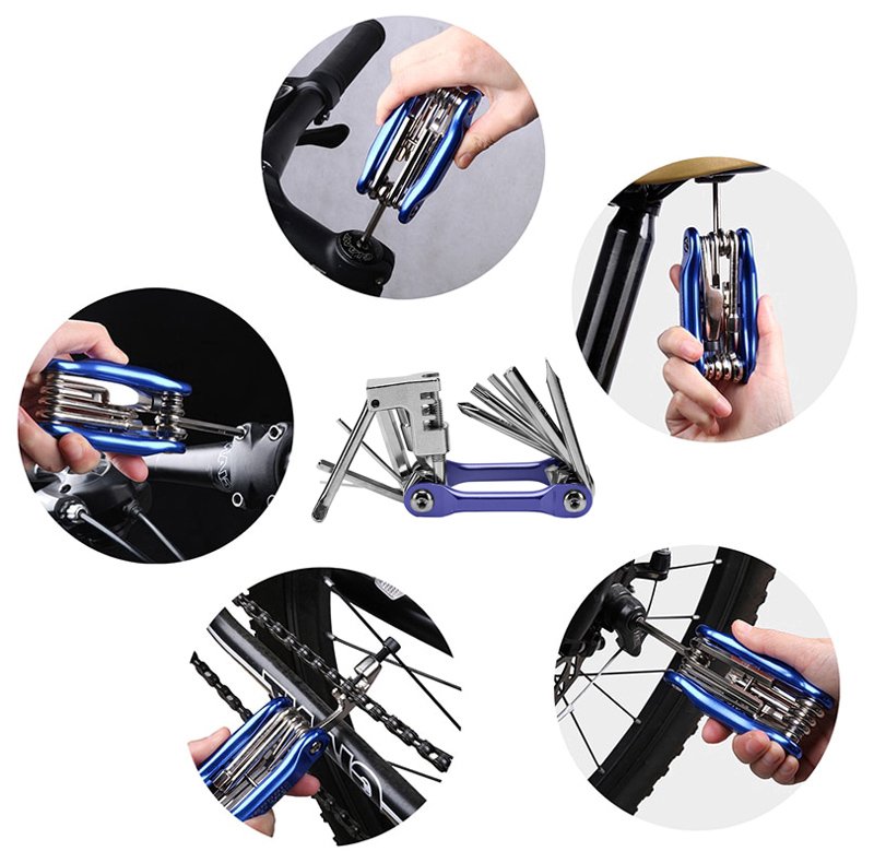 Με το πολυεργαλείο ποδηλάτου BIKE-0045, μια χαλαρή βίδα ή μια μικροεπισκευή θα πάψει να αποτελεί πρόβλημα. Αποτελείται από διάφορα κλειδιά και κατσαβίδια και είναι μικρό σε μέγεθος για να το έχετε μαζί σας σε κάθε ταξίδι.