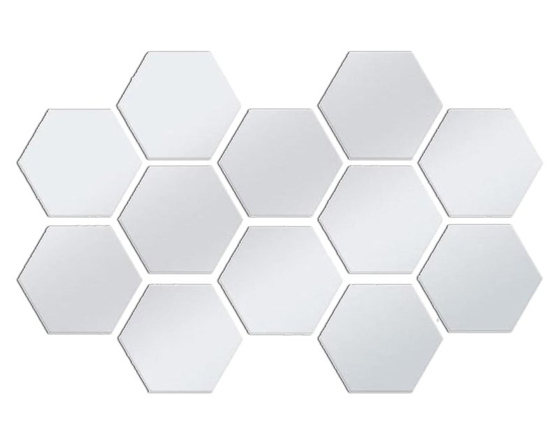 Σετ ακριλικοί καθρέφτες σε σχήμα εξάγωνου, ιδανικοί για την διακόσμηση του σπιτιού σας. Η τοποθέτηση τους γίνεται στον τοίχο με αυτοκόλλητη ταινία, ενώ χάρη στο σχήμα τους, είναι εύκολο να τους προσαρμόσετε και να δημιουργήσετε ένα ομοιόμορφο μωσαϊκό που θα απογειώσει την αισθητική του χώρου σας.