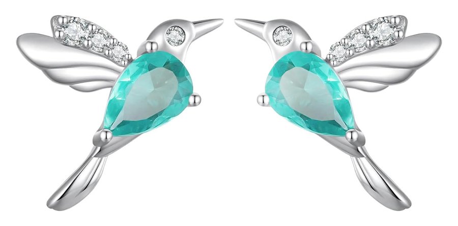 Καρφωτά σκουλαρίκια με σχήμα πουλιού Bamoer, κατασκευασμένα από ασήμι 925, διακοσμημένα με διάφανο κρύσταλο βεραμάν χρώματος και αστραφτερή κυβική ζιρκόνια λευκού χρώματος.