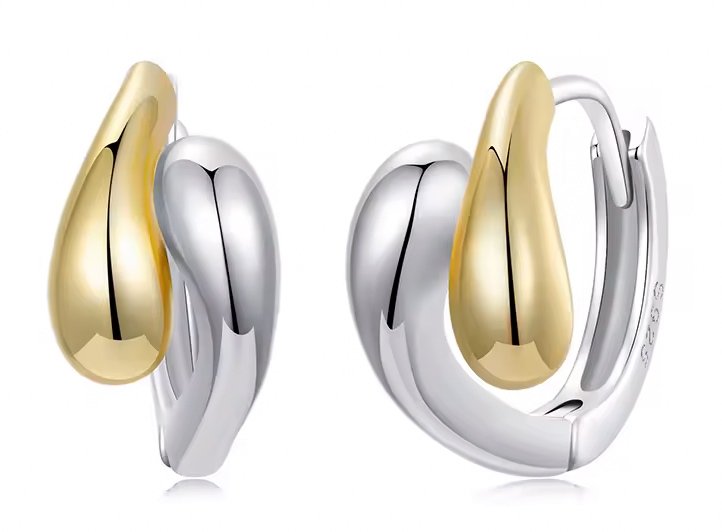 Μοντέρνα σκουλαρίκια κρίκοι Bamoer, κατασκευασμένα από ασήμι 925 και με επιχρυσωμένο φινίρισμα.